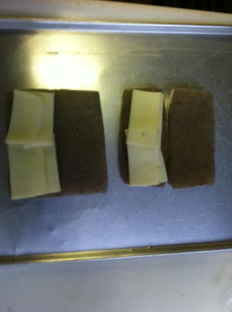 ![]() こんにゃくは下茹し2等分にして更に厚みを半分に切ったらフォークで突き刺し強めに塩胡椒をする。その上にチーズをのせる。