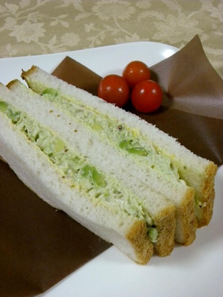 バターは柔らかく練り、マスタードとよく混ぜたらパン2枚の片面に塗り、フィリングを挟んで出来上がり。