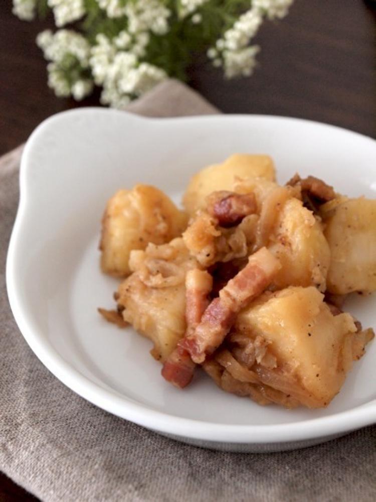 ジャガイモは皮付きのまま茹でて皮を剥いておきます