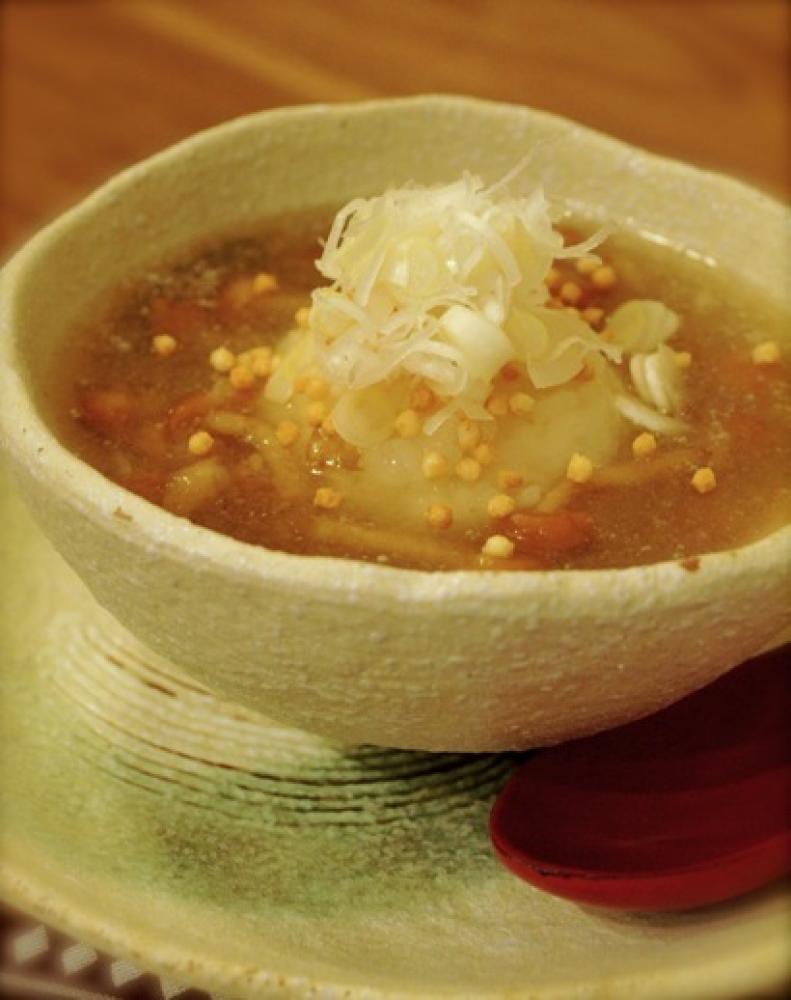 ![]() 器に丸く小さめににぎったおにぎりを入れ、餡をかけてお葱や、ぶぶあられなどをトッピングしてできあがりです