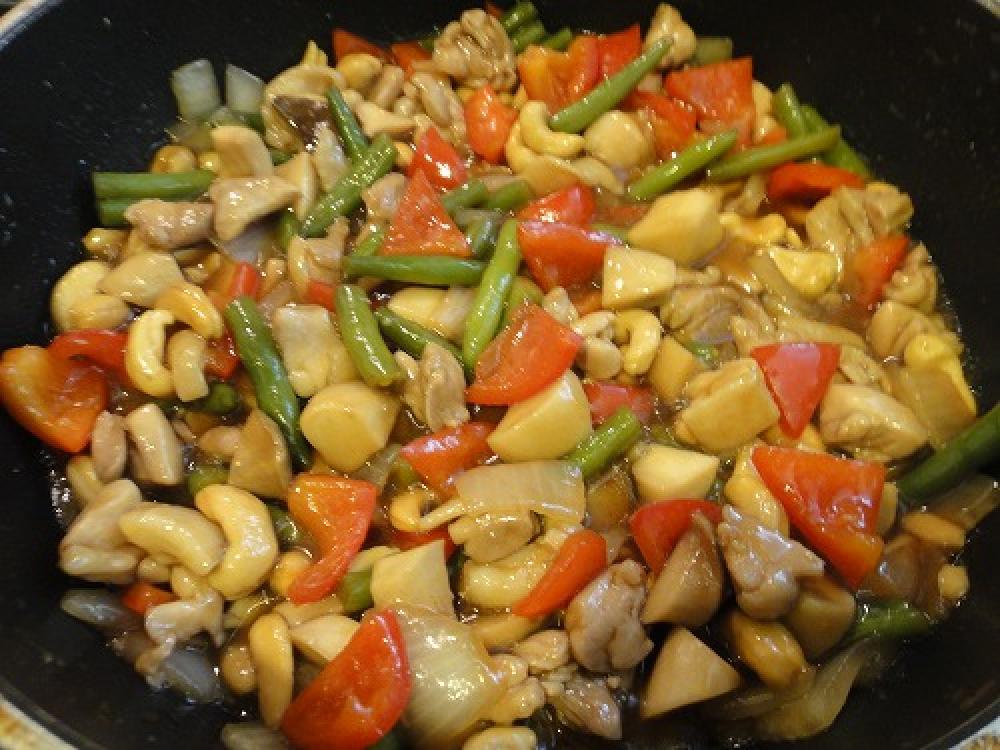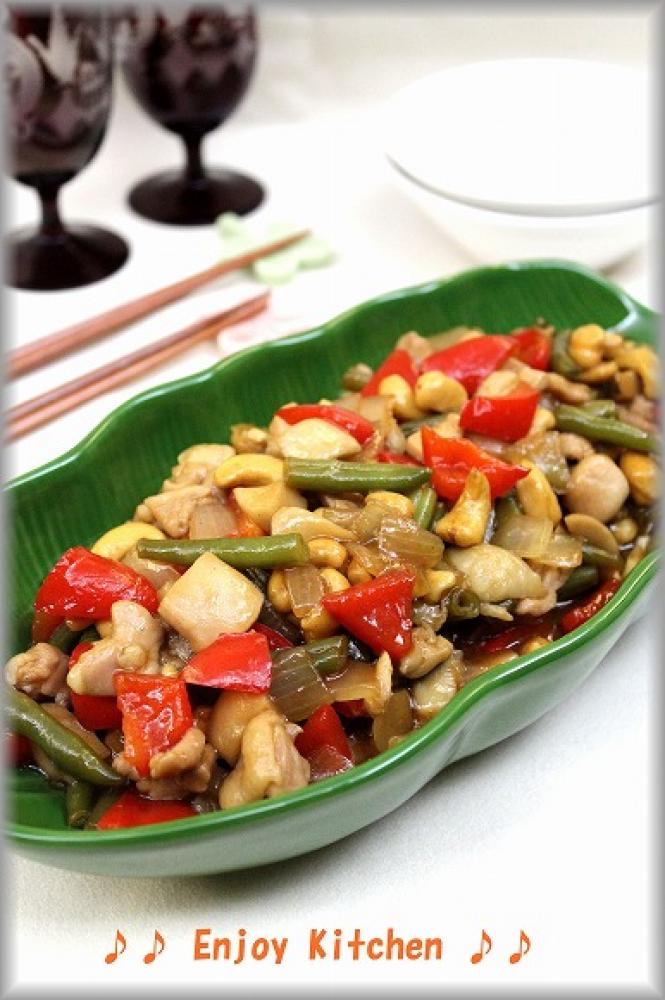 ![]() カシューナッツ、合わせておいたAの調味料を入れ味を調えたらBの水溶き片栗粉でとろみをつけて完成。