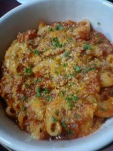 茹でたマカロニを加えて、ひと煮立ちさせ、仕上げに粉チーズ、オリーブ油を振りかけて、火を止めます。