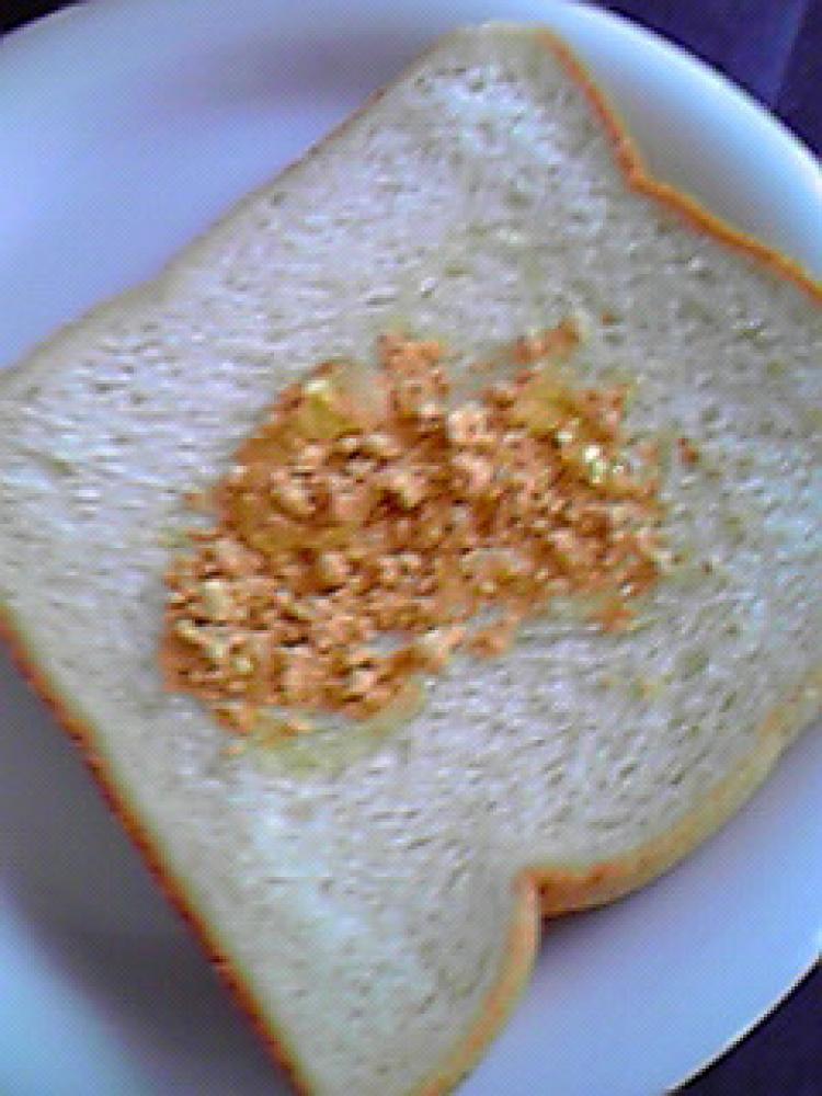 ![]() 食パンの中央にはちみつを塗ります。