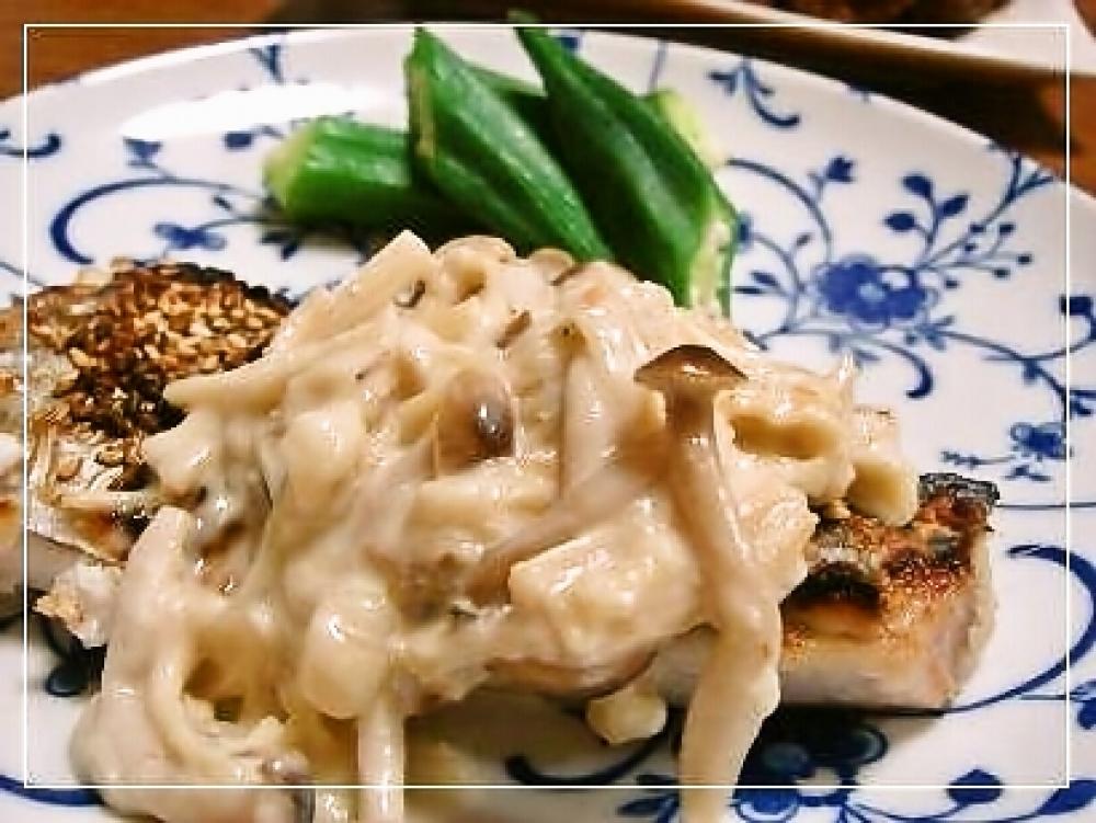 3のきのこをオリーブオイル少々で炒め、しんなりしたら4を加えて炒め合わせ、皿に移したサワラにのせる。