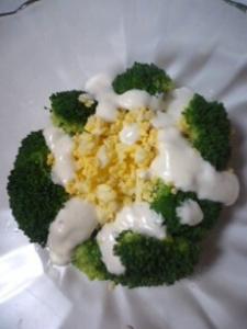 ブロッコリーを器に盛り、ゆで卵をのせ、食べる直前にドレッシングをかけてください。