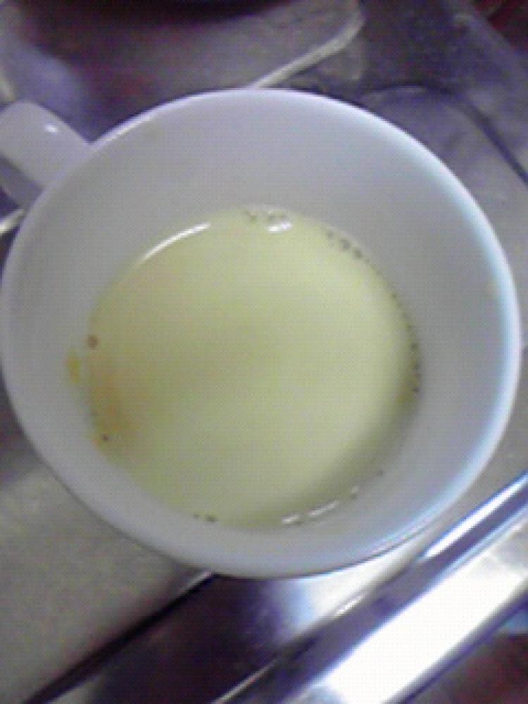 残りの牛乳を加えて、レンジで1分半ほど温めます。(お好みの温め具合にしてください)