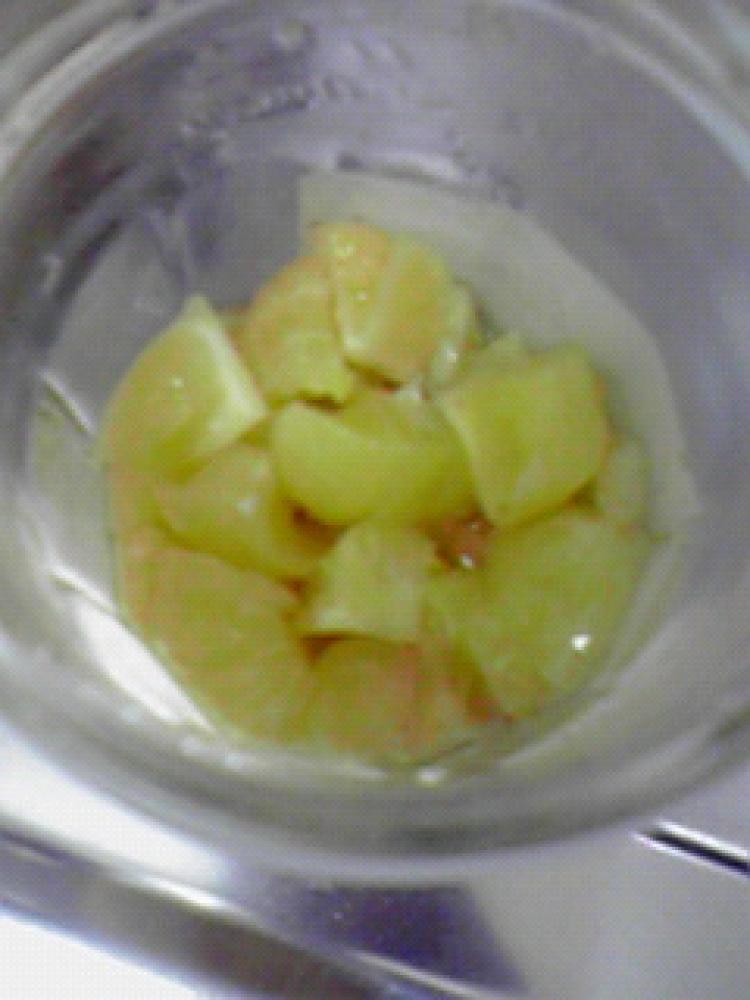 果肉の1房を2-3個に切り、取れれば種を取り出します。 |
