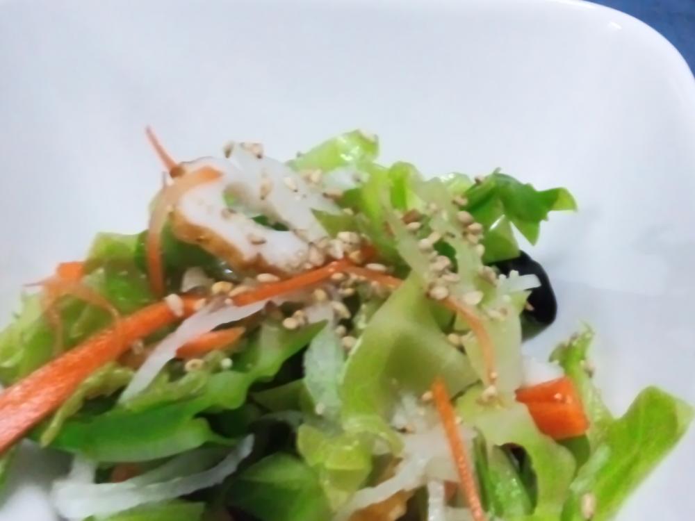 キャベツが蒸しあがったら、レンジから取りだし冷めてから千切りにします。ちくわを切り、わかめは水に戻しておきます