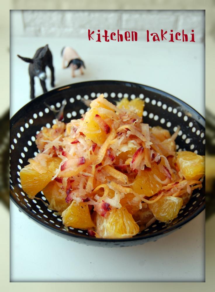 オレンジ・蜂蜜・塩こしょう・オリーブオイル・レモン汁も加え全体を混ぜ、味をなじませれば完成です。