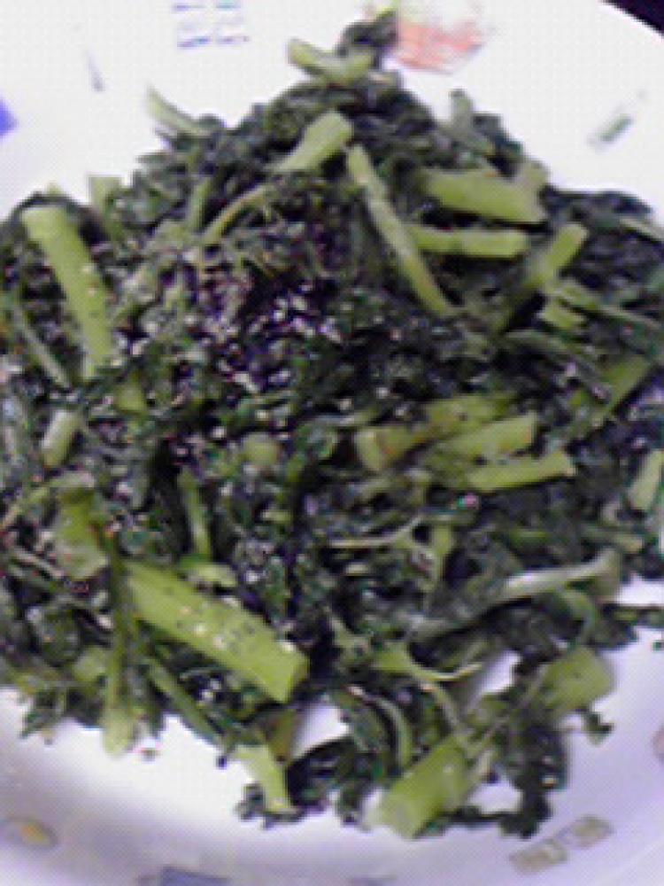 昆布茶で味を調え、お皿に盛ります。 すりごまをたっぷりかけます。 |