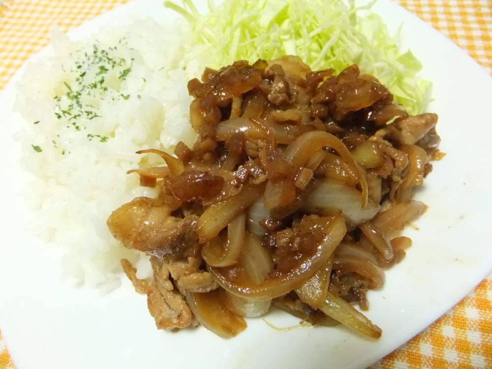 フライパンにサラダ油を熱し、豚肉を炒める。ある程度火が通ったら玉ねぎを加えて炒める。