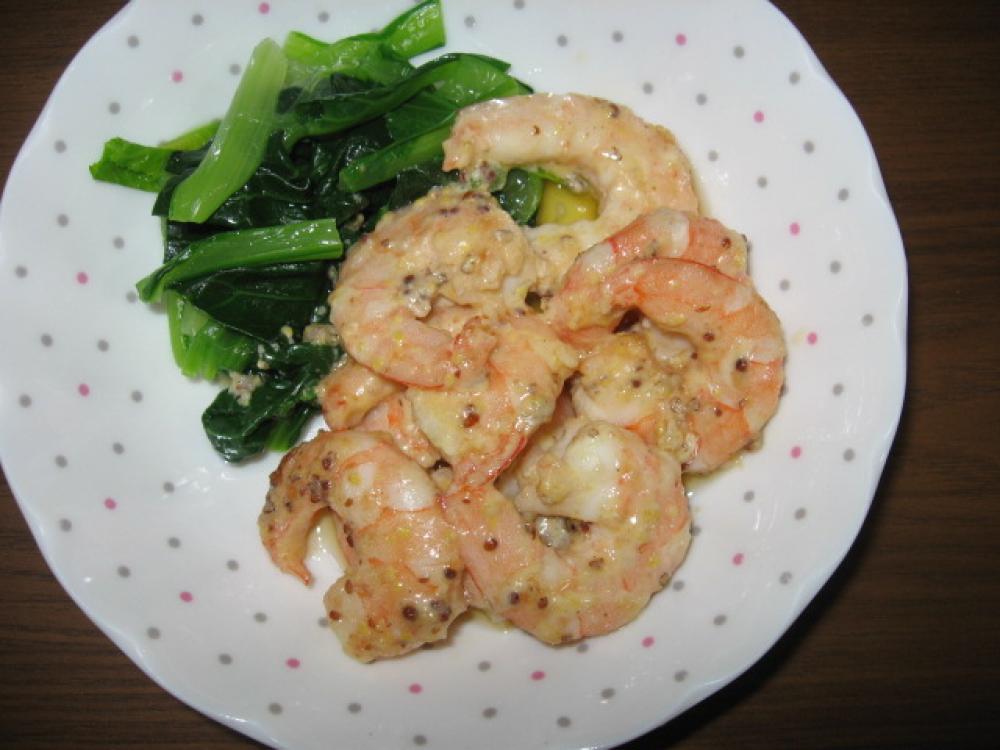 粒マスタードとマヨネーズで味付けをする。