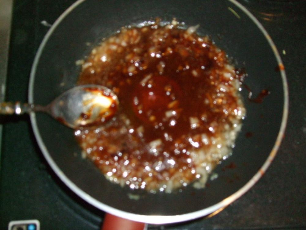 ![]() ソースパンでゴマ油とニンニク・生姜を弱火で炒め香りが立ったら味噌ダレを大S3加え混ぜます