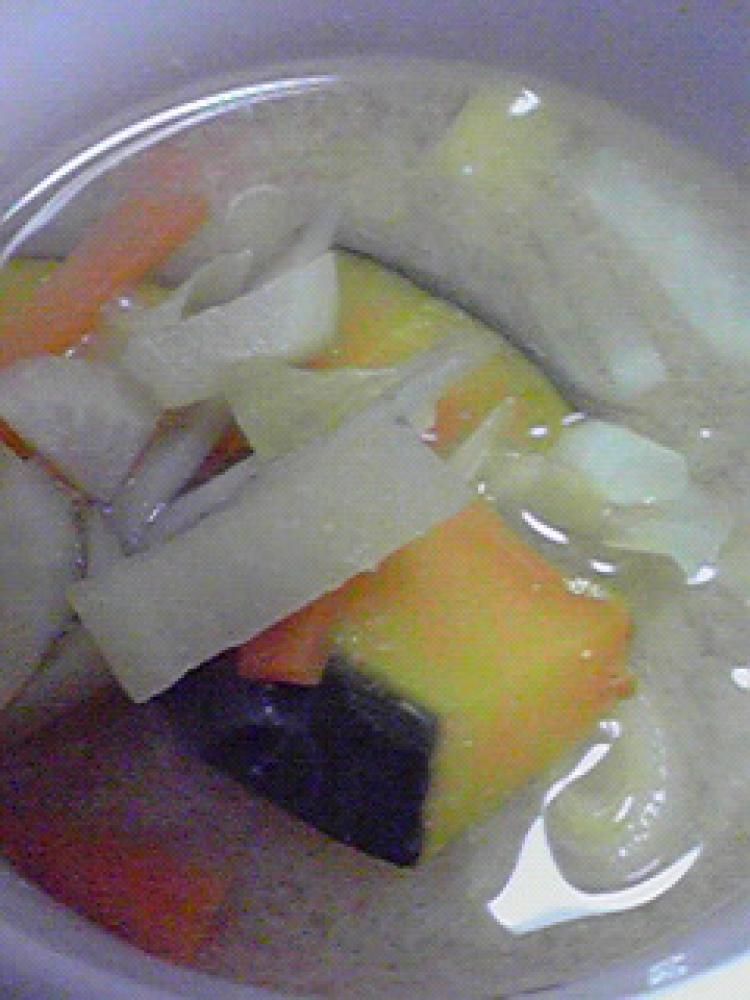 沸いたら、野菜を入れます。 |
