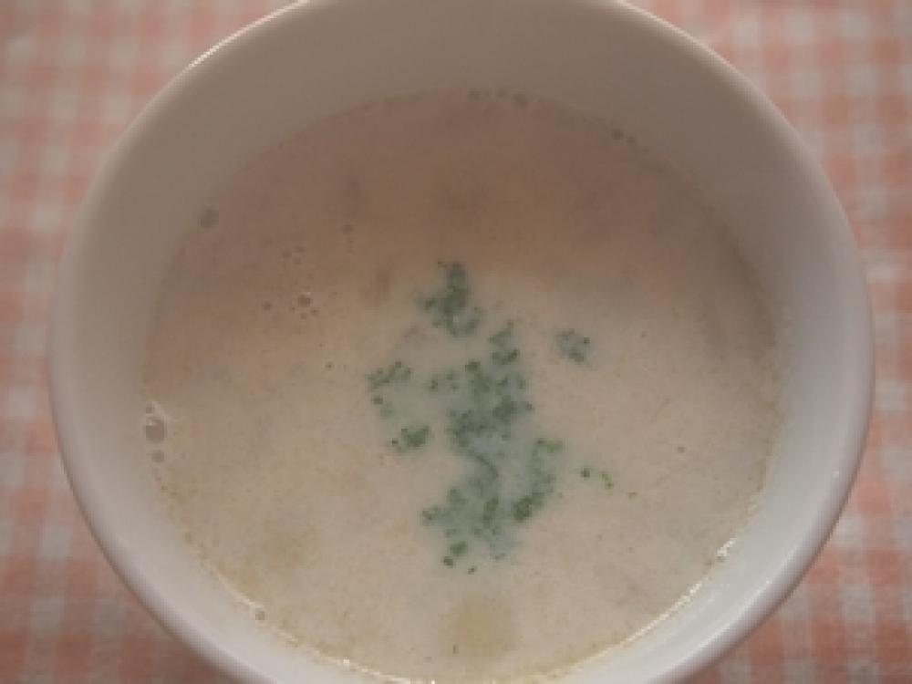 あく抜きしたレンコンをすり入れ、 牛乳を入れて、最後に塩・こしょうで 味を調え |