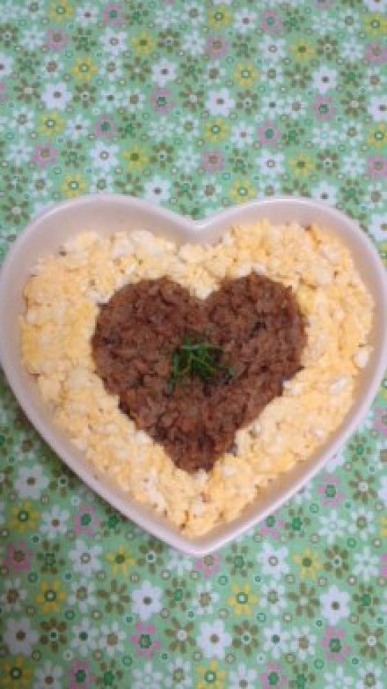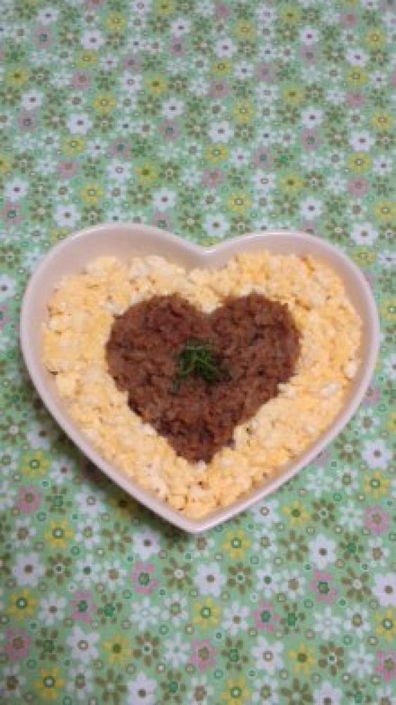 ![]() 器にご飯を盛り付け、【2】と【3】を乗せ、好みで刻んだしその葉を飾って完成
