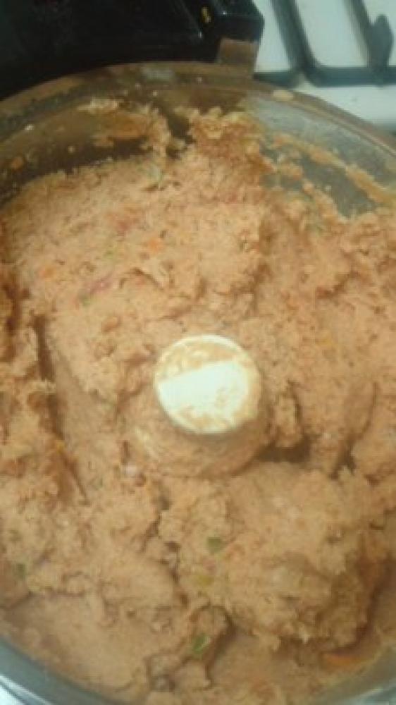 ![]() Aの野菜類を粗みじんにして電子レンジで加熱してから、Aの材料全てをフードプロセッサーにかけて白っぽくなるまで撹拌する