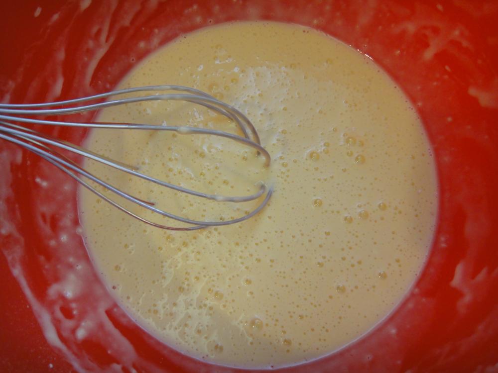 ![]() ボールにBの分量を混ぜ合わせ衣を作る。