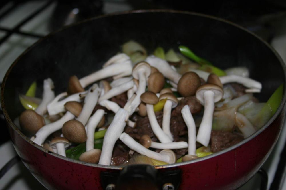 ![]() 3分ほど煮たら、シメジを加える.