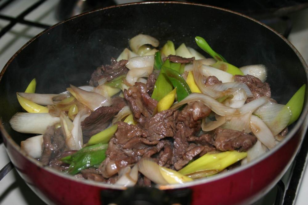 ![]() 酒と醤油を大さじ3ずつ入れ、混ぜたら長ネギを入れてさらに混ぜる.