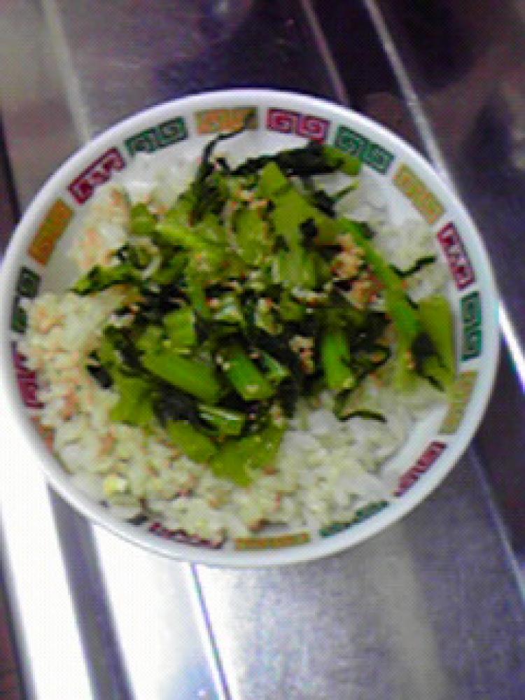 次に、大根葉を炒め、水分が飛んだら、ちりめんじゃこを加えます。