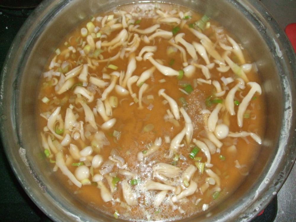 ネギは小口切りにし ブナピーは石づきを取って洗い小房に分けます。大きいものは縦に |