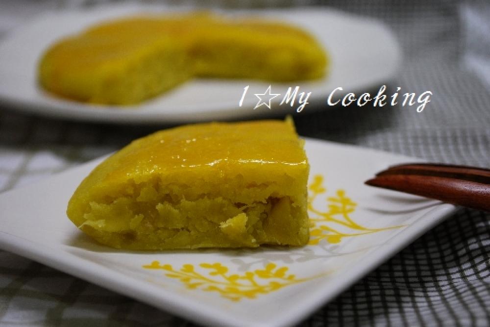 (3)を丸く調え平たくし、表面に水で溶いた卵黄を塗ります。
