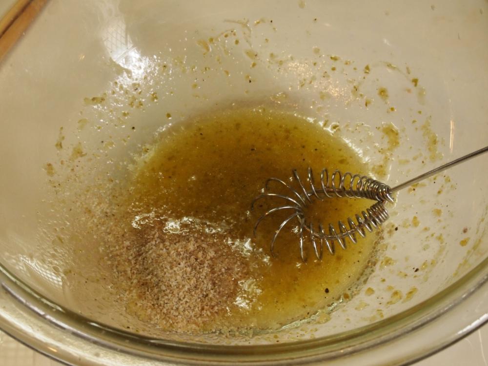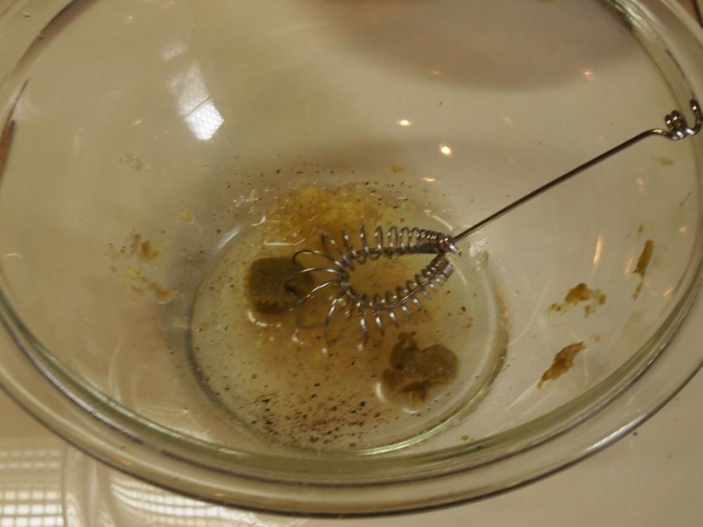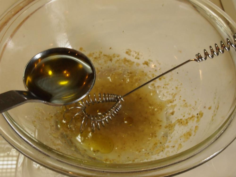 ![]() オリーブ油を少しずつ加えてよく混ぜる。