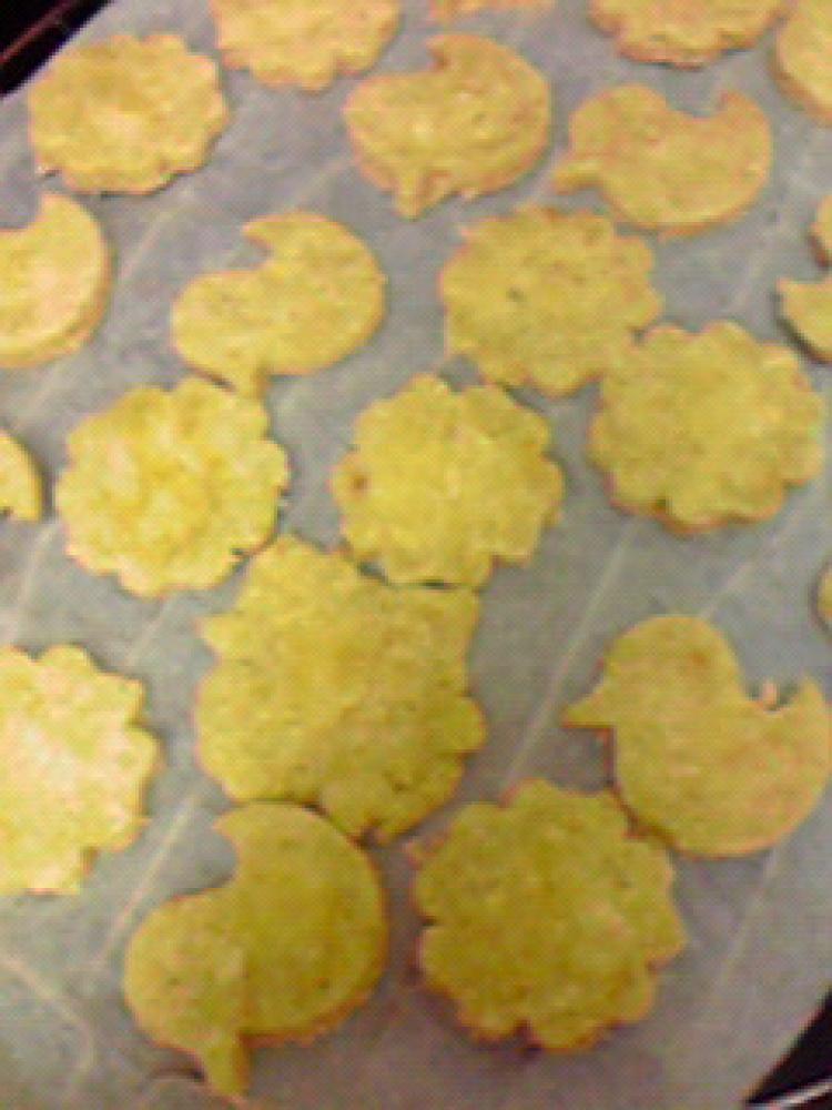 好きな抜型で抜き、クッキングシートを敷いたターンテーブルに並べます。