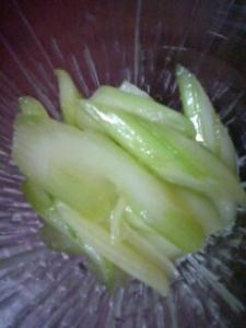 セロリは1cm幅の斜め切りにします。(ひと皮むいて筋を取ると舌触りが良くなります。)