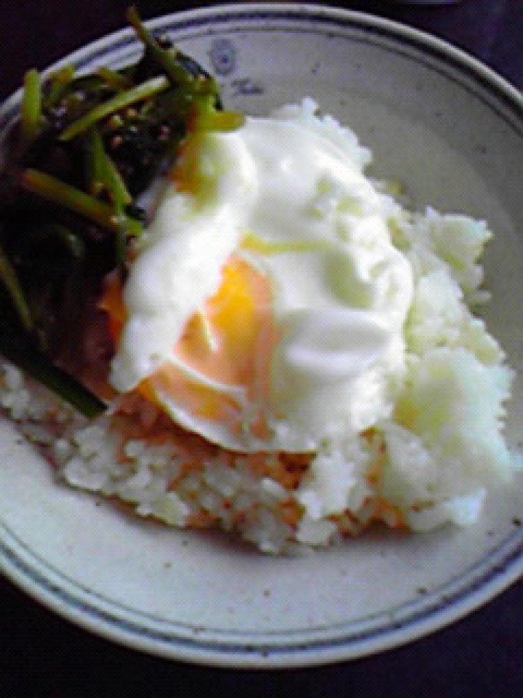 ごはんに乗せます。 お野菜を添えます。 |