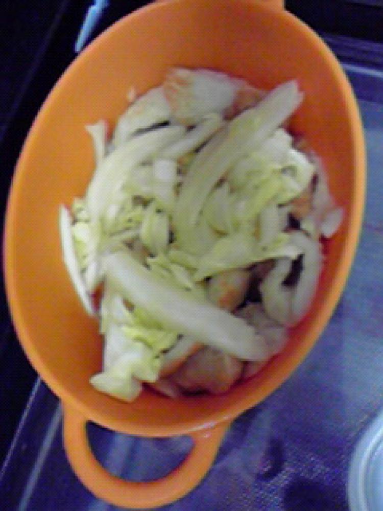 ちくわは、斜め切りにします。 シリコンスチーマーに春キャベツとちくわを入れます。 |