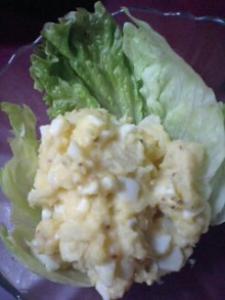 マヨネーズ、粒マスタードで和え、刻んだ半熟卵を加えて混ぜます。