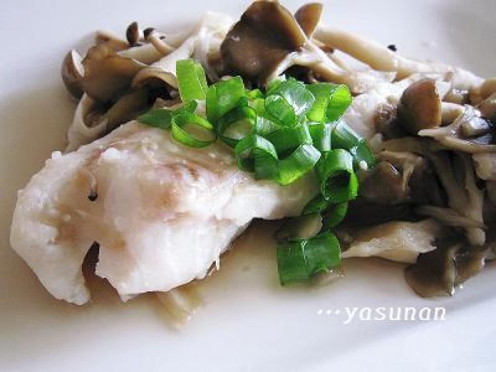 厚手のお鍋(またはフライパン)に、きのこを入れ、たらをのせ、Bをまわしかけて、蓋をして、中弱火で7~8分ほど蒸し焼きする