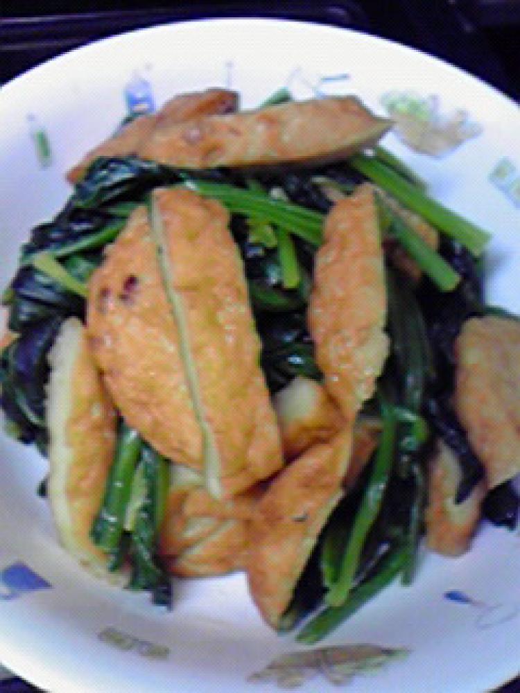ほうれん草を炒め、しんなりしたら、さつま揚げを戻し入れます。