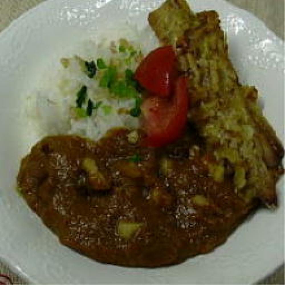 鍋に4、カレールウを入れ、かきまぜながら、とろっとするまで煮て、あらみじん切りのくるみを加え一煮立ちする。