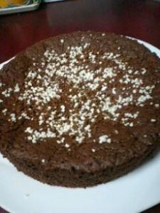 スポンジ型(直径19cmのもの)に流し入れ、160℃のオーブンで約40分焼きます