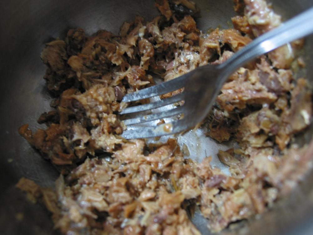 ![]() さば缶は水分を切り、フォークでほぐしておく。これに1とカレー粉を加えよく混ぜて16等分にする。