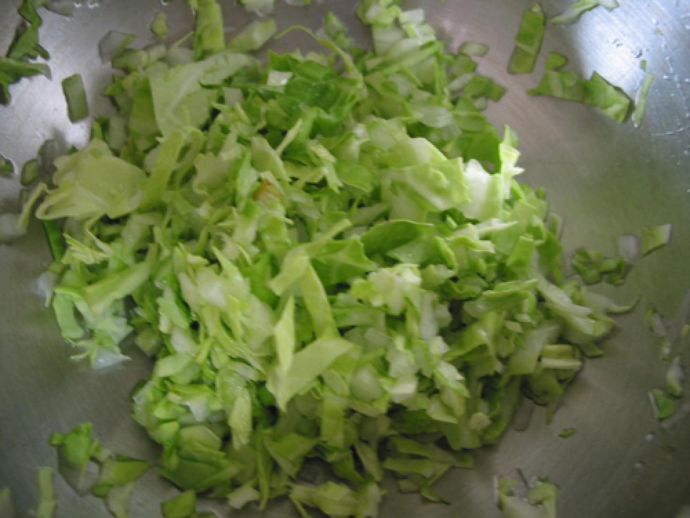 ![]() キャベツと玉ねぎはみじん切りにして塩をし、揉んで水分を切っておく。