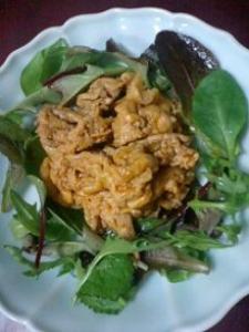 皿にベビーリーフを敷き、3を盛り付けます。