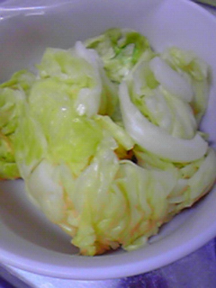 ジップロックにキャベツを入れ、合わせ酢をかけてよくもみます。