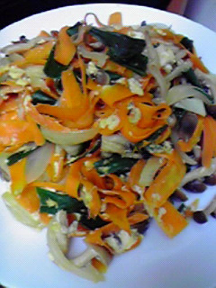 人参はピーラーで薄くスライスし、しめじは食べやすくほぐします。