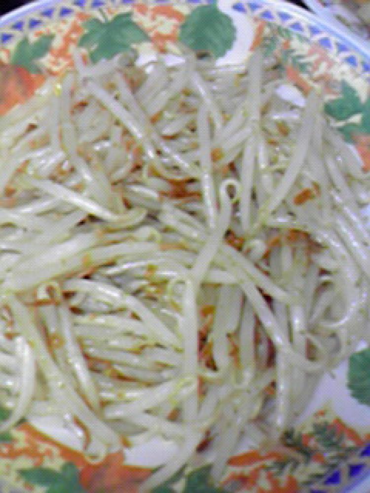 沸々してきたら、もやしといりごまを加え、さっと和えます。 |