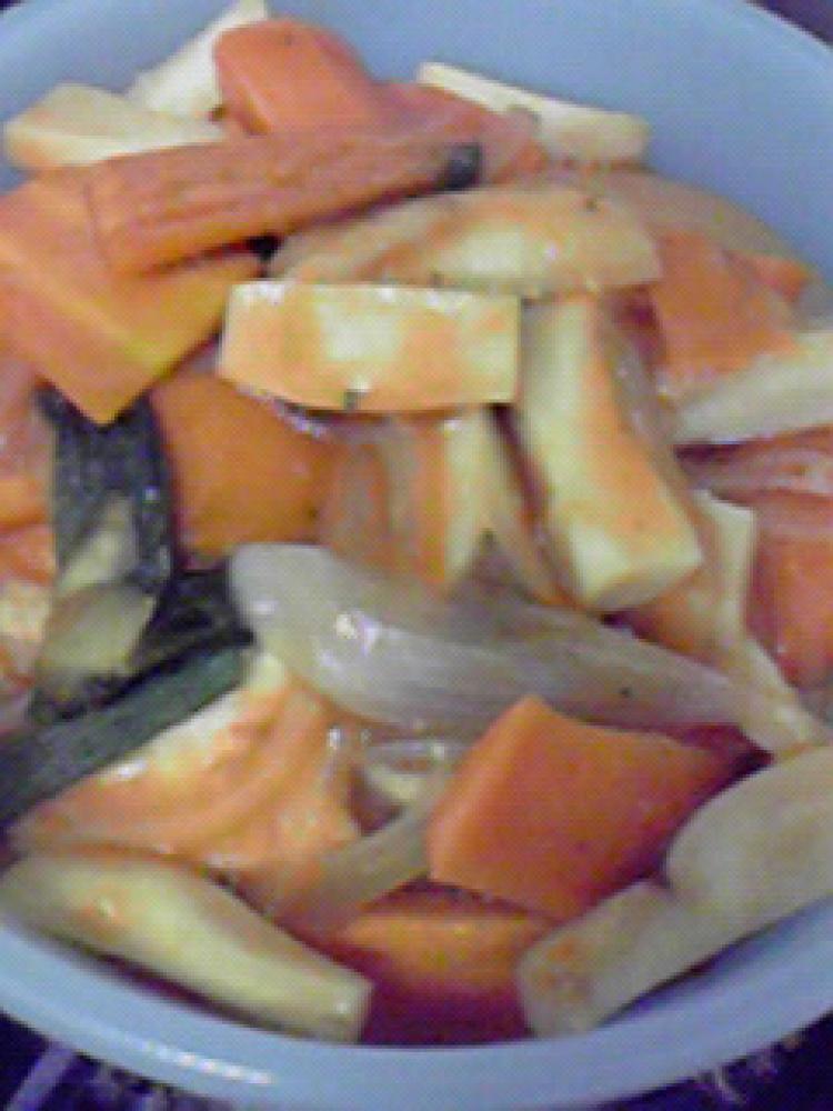 フライパンで野菜をいため、火が通ったら、合わせ調味料をからませます。