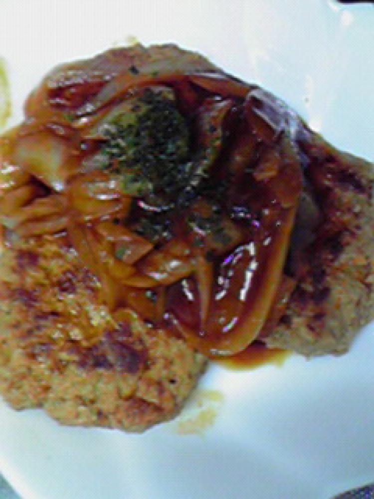 しんなりしたら、コンソメと水を加えて、ハンバーグに火を通します。
