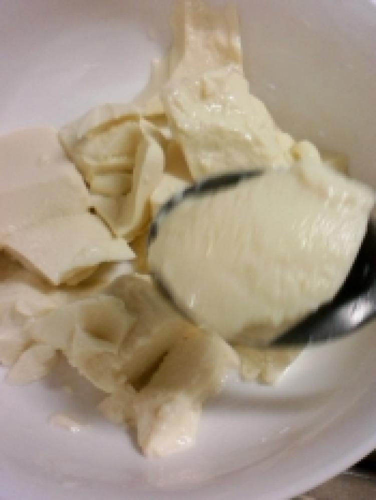豆腐は水切りしないで使います。カレースプーン等で食べやすいサイズにすくい器に入れます |