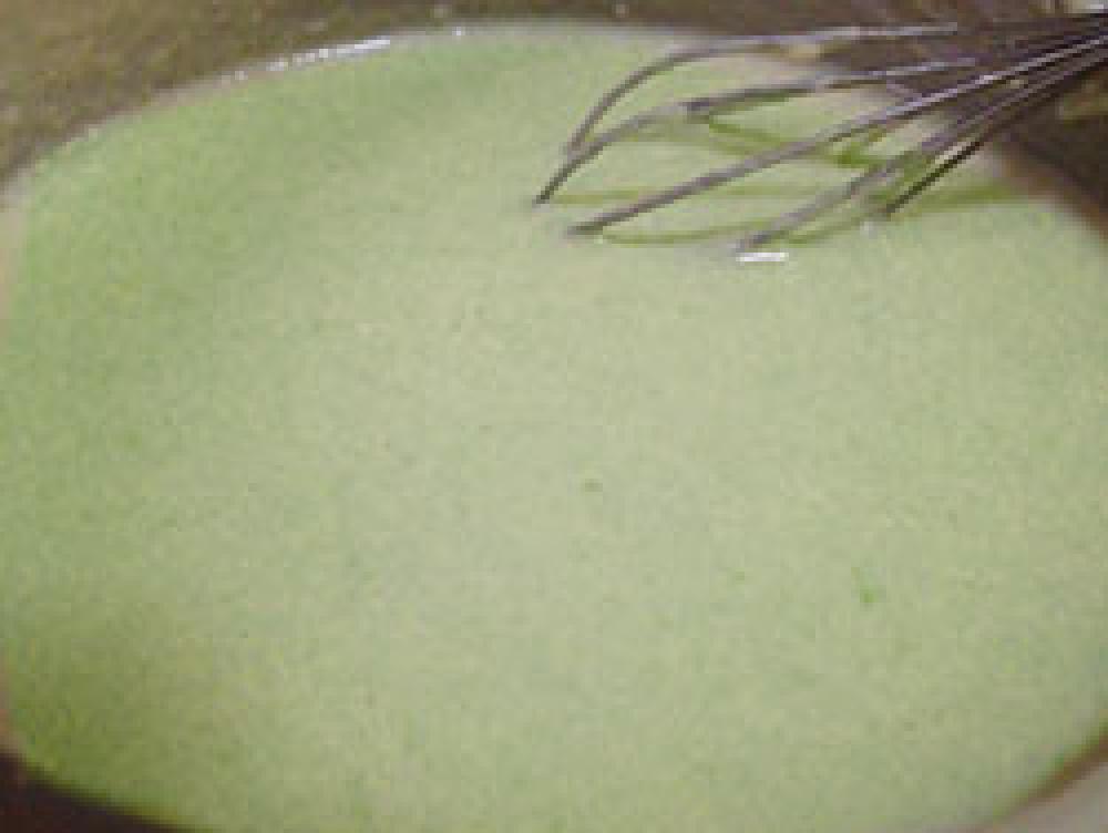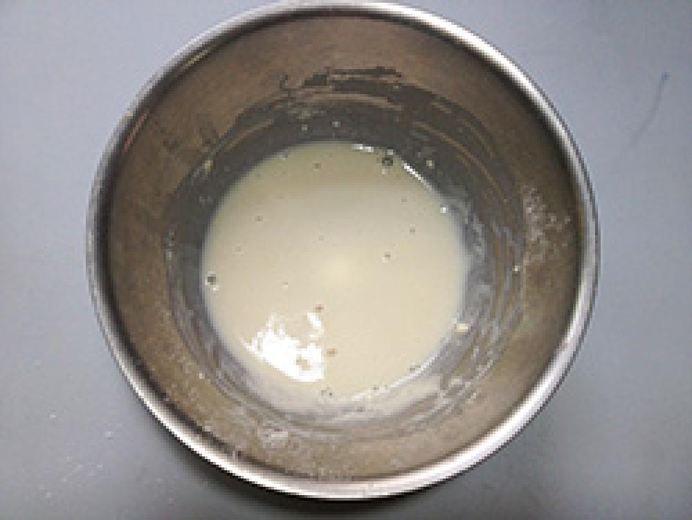 ![]() 小麦粉を小容器に振るい入れたら、豆乳Bを加え、小さな泡だて器を使ってダマがなくなるまでよく混ぜ溶かす。