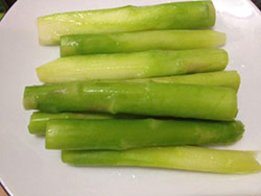 ![]() Aのアスパラの根元のかたい部分の皮を削り取り、2本に切ったら、塩を入れた茹でさっと湯がき、冷水に取り、あら熱を取る。