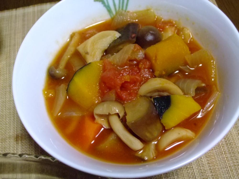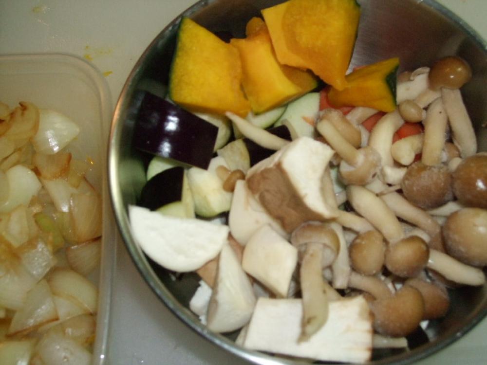 ニンジンは皮をむき1.5cm角、 かぼちゃとエリンギは小さ目一口大に切ります |