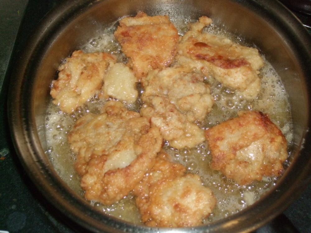 ![]() ソース2/3程にから揚げを入れよく絡めます